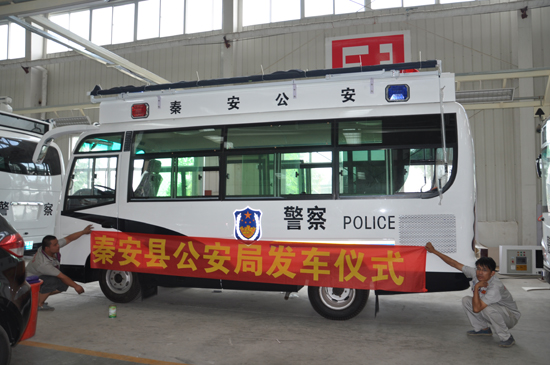 2014年7月31日,在河北新宇宙電動(dòng)車廠區(qū)舉行了發(fā)往甘肅天水秦安縣 燃油移動(dòng)警務(wù)室 的發(fā)車儀式,這是秦安公安局在本月第二次向河北新宇宙下訂單。新警務(wù)順應(yīng)了新警務(wù)時(shí)代,加之,甘肅人稀地廣的地域環(huán)境。躍迪燃油移動(dòng)警務(wù)室入駐此地..