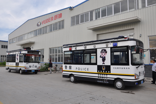 2014年7月25日,由河北新宇宙電動車公司生產的 8座電動巡邏車 走進成都郫縣安德鎮鎮政府大院。鎮政府勒緊褲腰帶,把全鎮治安穩定,鄰里團結和睦,群眾安居樂業作為出發點,購置2臺躍迪電動巡邏車,為全鎮和諧發展加把力。 這款電..