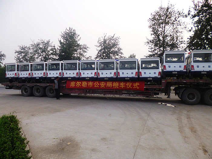 2013年7月18日 新疆庫(kù)爾勒市公安局訂購(gòu)的十一輛電動(dòng)巡邏車正式下線,整裝發(fā)往新疆。此次采購(gòu)的是封閉式電動(dòng)巡邏車,十分適合在新疆當(dāng)?shù)匮策壥褂谩? 十一輛電動(dòng)巡邏車裝車完畢,發(fā)往庫(kù)爾勒市