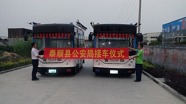 平鄉(xiāng)縣公安局10輛電動(dòng)警務(wù)室發(fā)車儀式 平鄉(xiāng)縣公安局采購(gòu)我司10輛移動(dòng)警務(wù)室,此款電動(dòng)警務(wù)室可以流動(dòng)執(zhí)勤,車上配備的攝像頭可以對(duì)周圍的環(huán)境進(jìn)行實(shí)時(shí)監(jiān)控,對(duì)于案發(fā)率較高的片區(qū),可以放置一輛此警務(wù)室,可以有效的震懾扒手,盜竊,搶包..