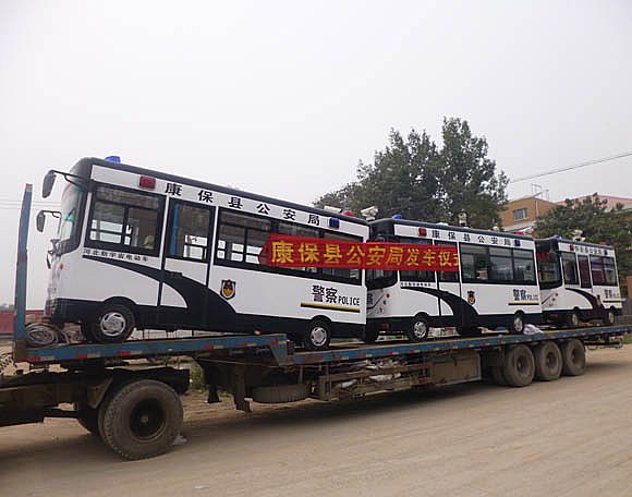 7月18日,在河北新宇宙電動車有限公司廠區,舉行了前往張家口康保縣公安局的移動式警務車的發車儀式。此次發往康保縣公安局的 移動警務室 均是河北新宇宙電動車有限公司的躍迪 移動警務室 新型車型。