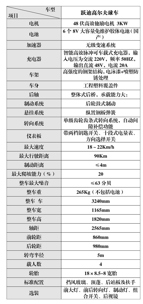 專門為高爾夫球場開發(fā)的場地用車。該車地盤低,上下方便,轉彎半徑小,操縱靈活,行駛平穩(wěn),整車載重性能優(yōu)越,行駛中平穩(wěn)顛簸受力小,駕乘舒適。