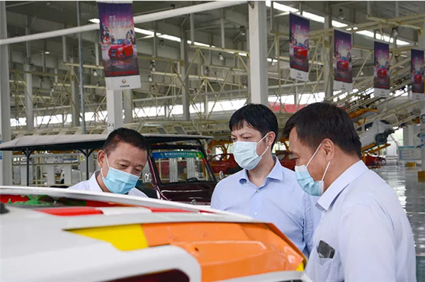 徐翀理事長一行實地考察我公司沖壓、焊裝、涂裝、總裝四大工藝生產線,詳細了解了機器人自動焊接生產線的情況,對全自動智能化*科技與新能源汽車生產結合表示充分認可與贊揚。
