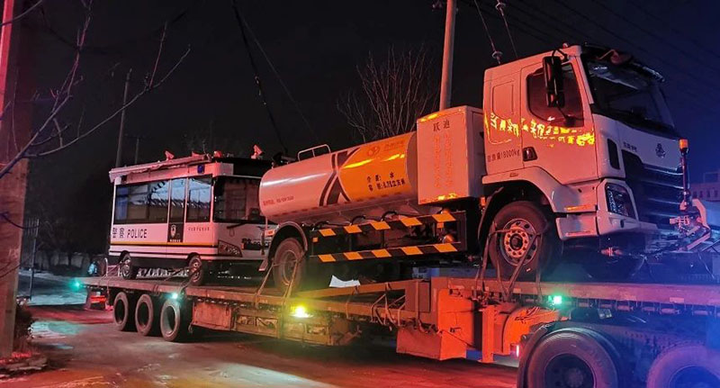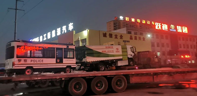 躍迪新能源環衛車連夜裝車準備出發。